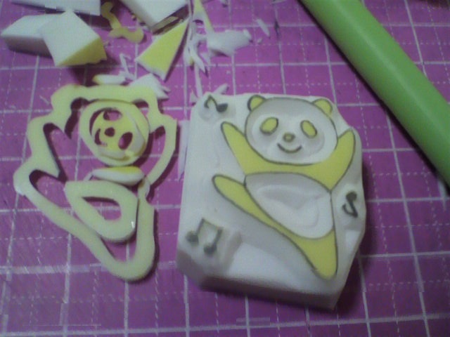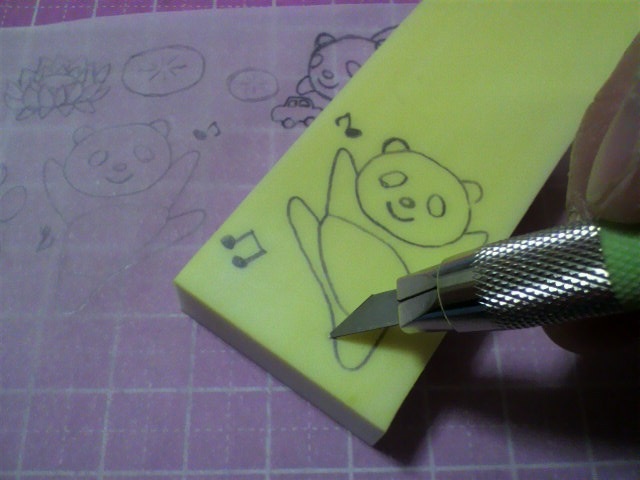 久々に彫るセリア消しゴムが硬いのなんのって!