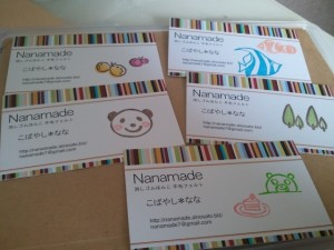 5月 29 2013 名刺♪作ってみました♪ Posted on 2013年5月29日 by Nana 衝動的に名刺を作ってみました♪ 偶然にもサイトと似たような色合いのデザインがあって、コレ!と一瞬で決めました。 名前などは左側に寄せて…空いてる右側には… はんこを捺してみましたよ♪( ´▽`) イメージ通り〜♪